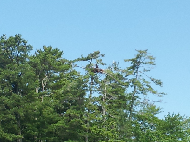A bald eagle nest on Blueberry Island. We saw the male flying quite a bit as the island is near where we were staying. In this picture, the female is hanging out with the kids.